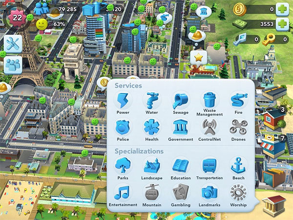 当你觉得无聊的时候,我们大家就不妨下载simcity模拟城市,它是一款比较有趣味的模拟建造类游戏,游戏当中作为一名市长,就必须要去创建一个豪华美丽的城市,整个玩法也是非常的独特,拥有着非常多的原料,你就必须要去收集不同的原料,成立功的去进行建造,同时在挑战的过程当中,也可以获得加速币,利用这些加速币可以极大的提升制造速度。