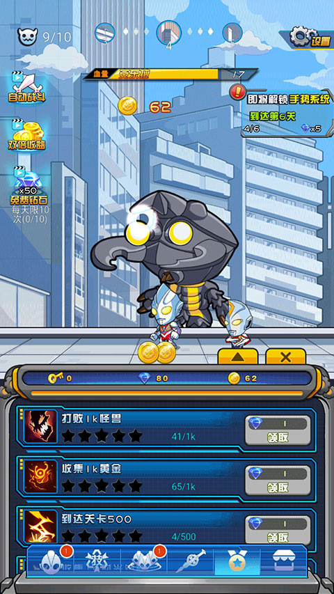 参与超激斗银河战士奥特曼游戏中的各项福利活动,即可获得钻石、金币、周卡特权等豪华奖励。