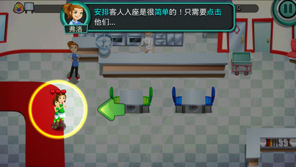 3、客人入座后,点击点单机,将订单信息传达给厨房,继续推进游戏流程。