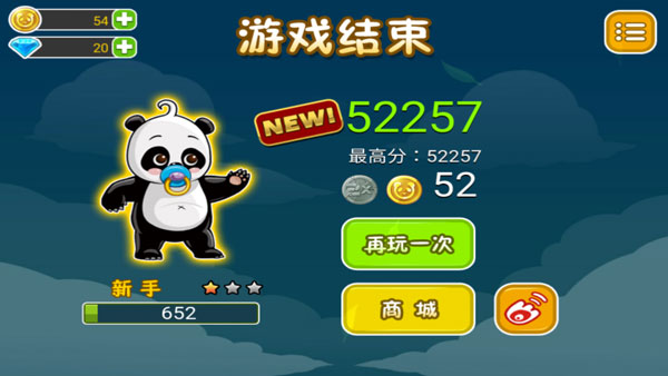 6、熊猫跑的距离越长,最后结束后得分越高,获得的金币也就越多;