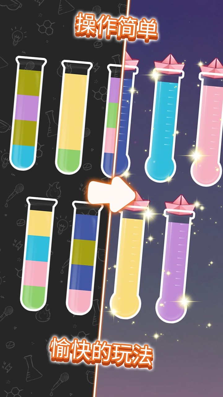 对于喜欢玩休闲游戏的小伙伴们,我们大家就可以下载水分类任务,它是一款极具趣味的休闲类游戏,在这个游戏当中最主要考验自己的思考能力,我们大家就必须要进行思考,如何才可以合并相同颜色的水,对此喜欢的小伙伴们就一定不要错过。