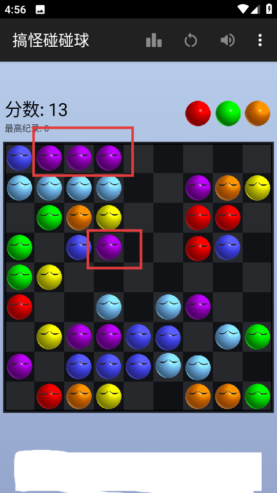 3、通过不断消除同色球,提升分数,尝试突破最高纪录。