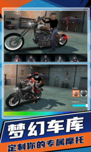 2)与全球在线玩家实时对战,感受激烈的竞争和PK,证明自己是最强的摩托车赛车手。