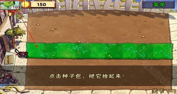 4、点击冒险模式,进入游戏,进入新手指导,玩家需要点击植物再点击需要放置的位置;