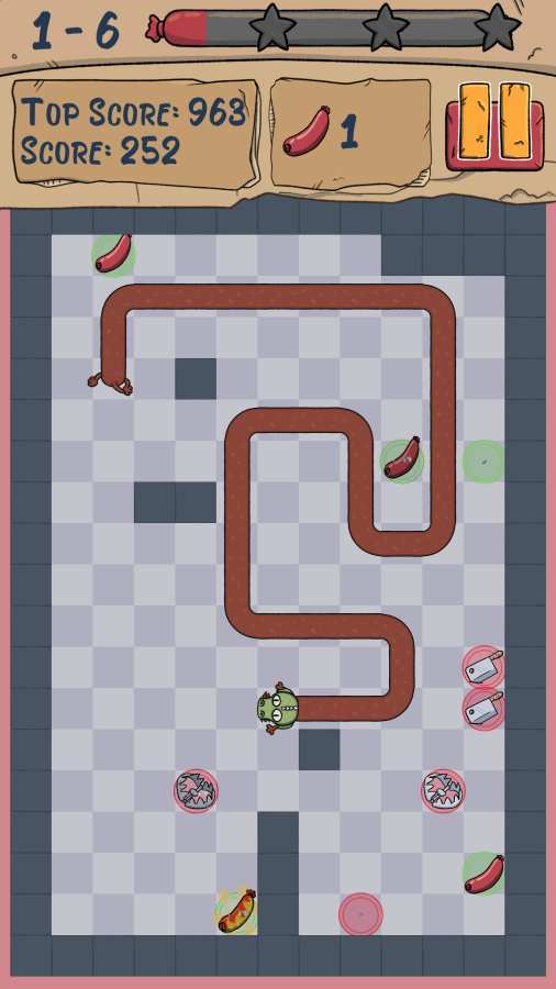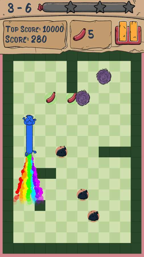 2. 尽量多找些香肠。你获得的分数越高,你就可以购买更多的新皮肤。
