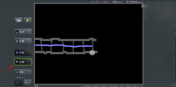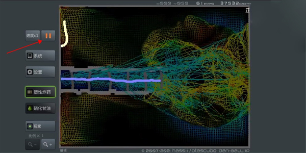 5、点击暂停键,将熔岩放置在金属顶的上方。