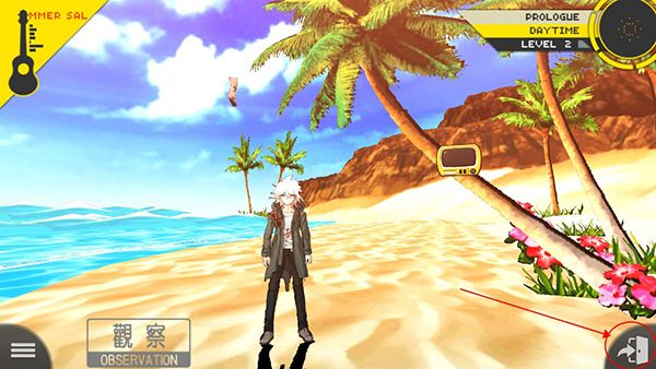 1、玩家在获得手册之后,玩家首先点击又下角的返回离开沙滩。