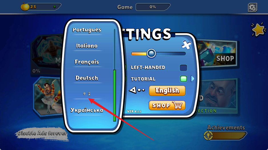 3、下滑列表,选择“中文”即可切换为中文界面。