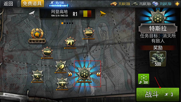 6、选择你需要游玩的关卡,接着点击右侧“战斗”进入游戏;