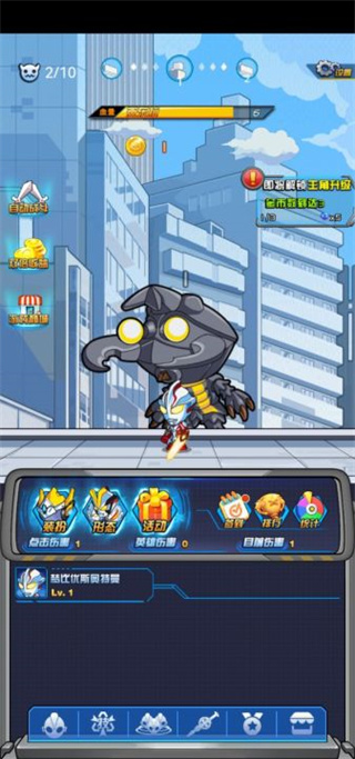 4、点击下方奥特曼面具按钮可以对自己的人物进行升级,升级除了可以加强伤害还可以解锁技能。