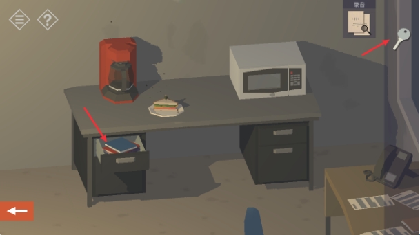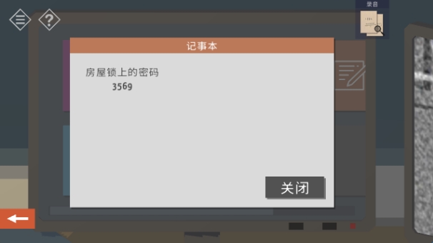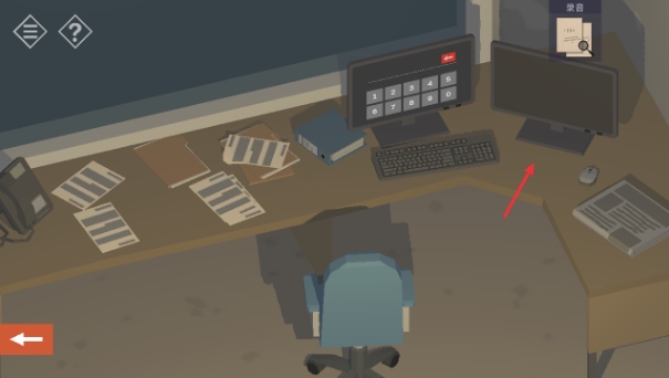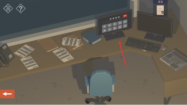2、房间内,先不要转动视角,点击桌面的这一堆纸,可以得到一张写有密码“2134”的纸。