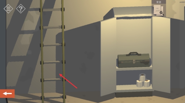 9、接着转动视角来到梯子这里,爬上天花板将密码锁打开,密码就是刚刚获得的“3569”。