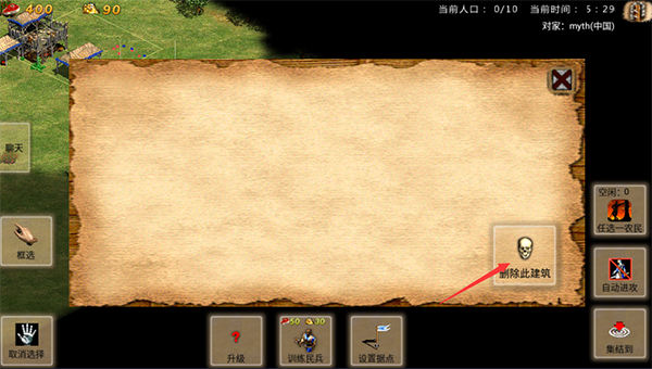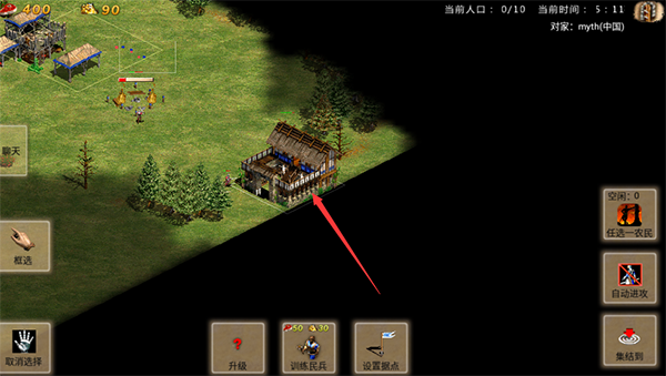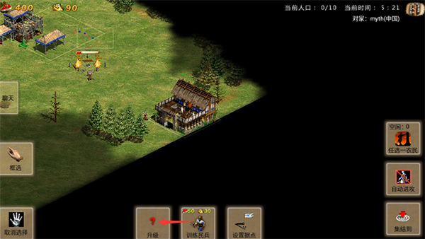 3、进入游戏,可以单选农民也可以点击框选按钮,选择范围内农民