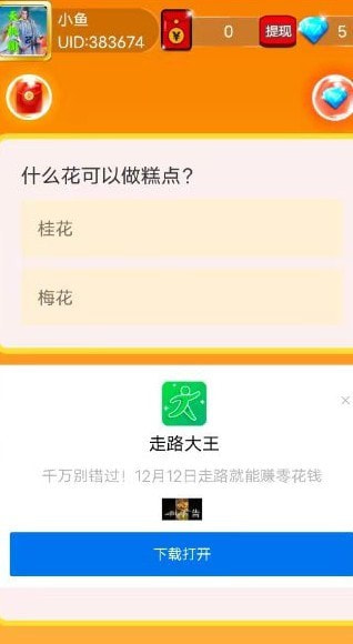 4. 选择正确的答案选项,每个问题都可以获得红包奖励。你回答的问题越多,你挣的就越多。