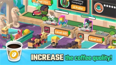1. 解锁更多的咖啡品牌和咖啡师,你的咖啡店会比他们更好,招聘员工,安排工作,扩大规模,雇佣更多的员工来做咖啡。