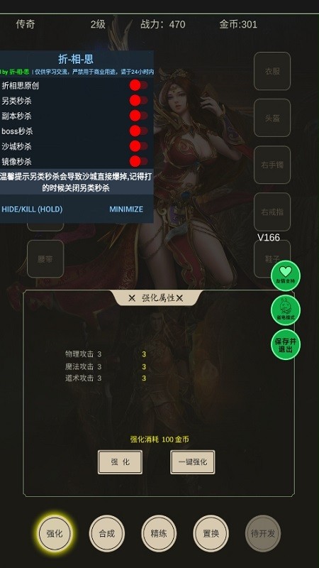 2、玩家可以继续练习武术,通过打怪和完成任务来提高自己的力量。