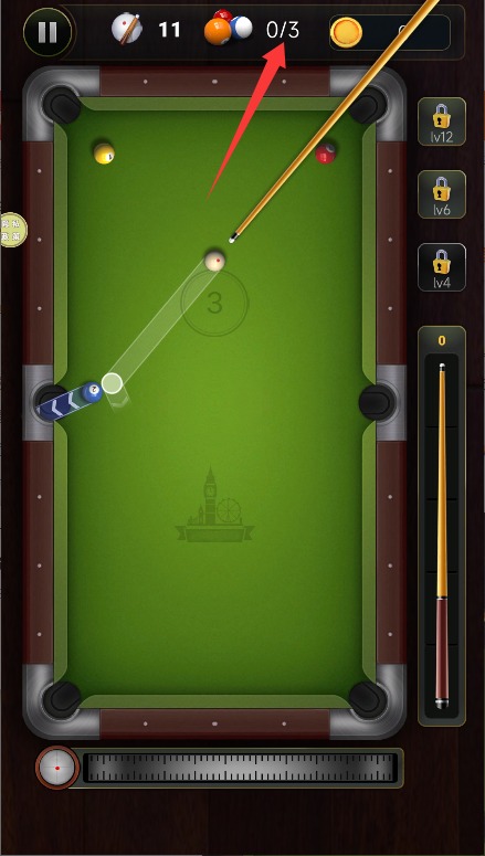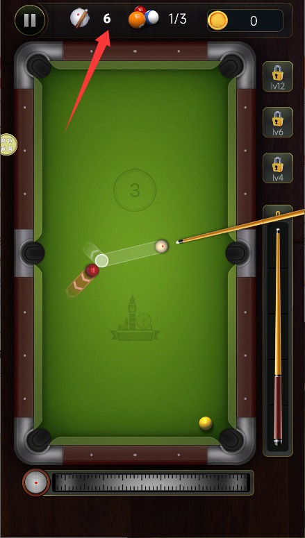 3、注意观察左上角显示的剩余击球次数,合理的规划每次出杆的策略选择。