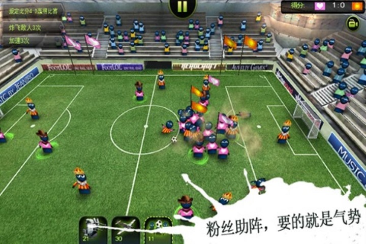 游戏当中采用了物理引擎系统,能够吸引更多的玩家,而且支持多人乱斗模式,你就可以在足球场上展开最为独特的大乱斗,能够从中获得更多的乐趣,在面临挑战的时候,你就必须要去展现自己的实力,合理的去使用武器来进行制敌,感受着最为趣味的体验。