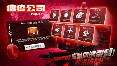 1. 多种病原体选择:游戏提供多种病原体,如细菌,朊病毒,生化武器等。玩家可以根据自己的喜好选择不同类型的病原体进行游戏。
