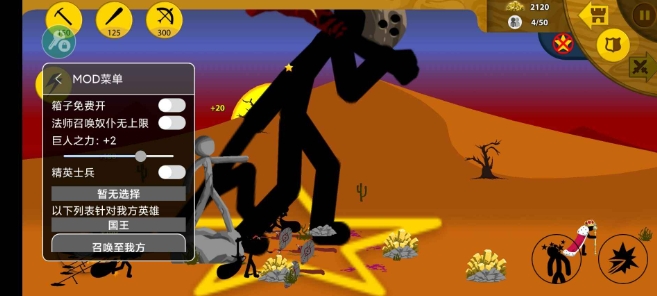 1、收集各种不同性能的火柴人,组建战斗单位,开采黄金或是发起战争争夺领土;