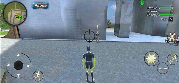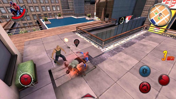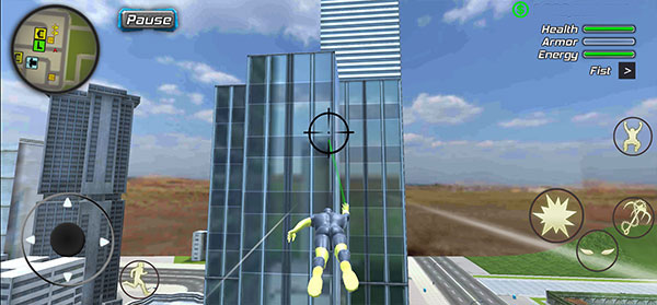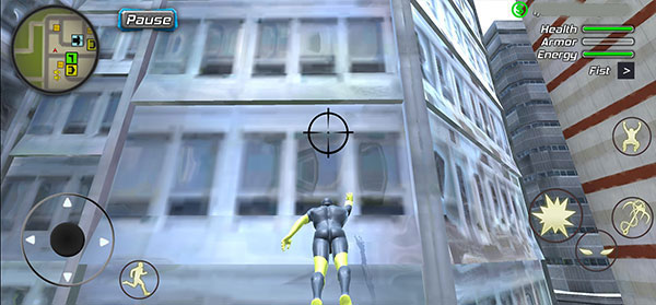 2、点击右侧的按键控制蜘蛛侠进行攀爬,攻击;