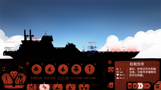 5、左边为玩家方阵营,击败对方舰队即可通关