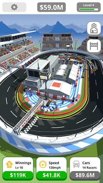 3)你可以升级汽车,赛道,甚至赛道,以提高你的赛车实力和帝国规模。