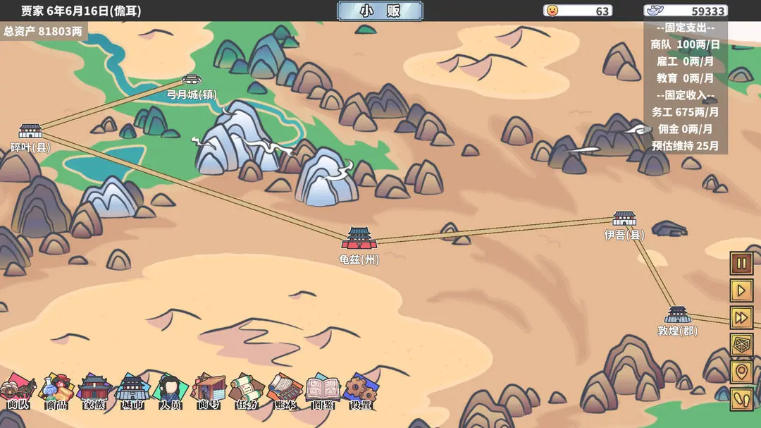 2、玩家可以拥有自己的商队,学会合理的经销方式。