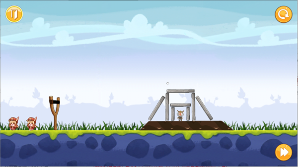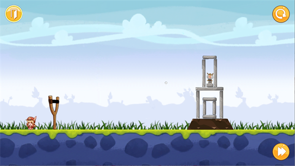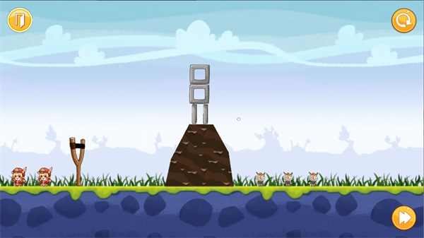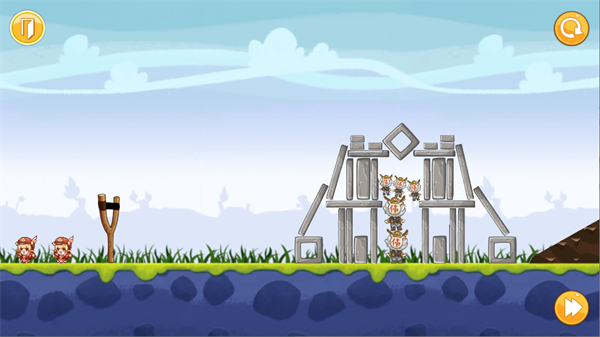 2、游戏的操作很简单,你需要在左侧拉动弹弓,然后攻击右侧的玩偶,后面还有会一些障碍石板哦;