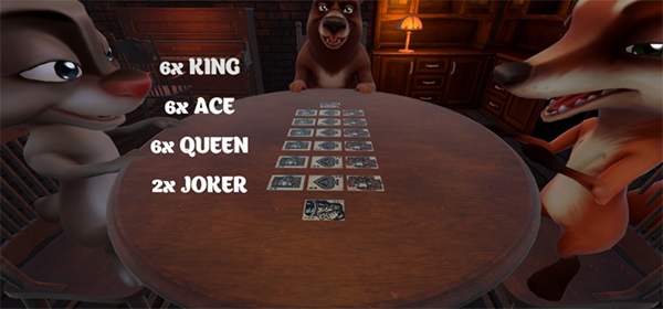 2、接下来进行发牌操作,每个玩家会发到5张扑克牌,手牌中有真也有假。然后每个玩家开始轮流出牌,轮到你出牌时,可以选择以下两种操作。