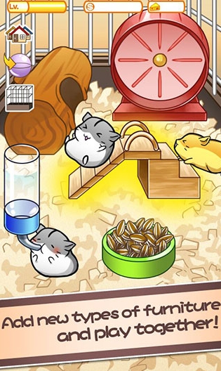 除了平时与仓鼠之间的友爱互动之外,还加入了消除挑战环节,玩家们可以通过消除挑战来获得金币,然后用金币购买各种仓鼠所需的物品;