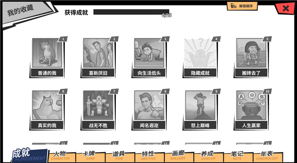 4、点击收藏,里面会显示玩家的各种物品收藏以及成就;