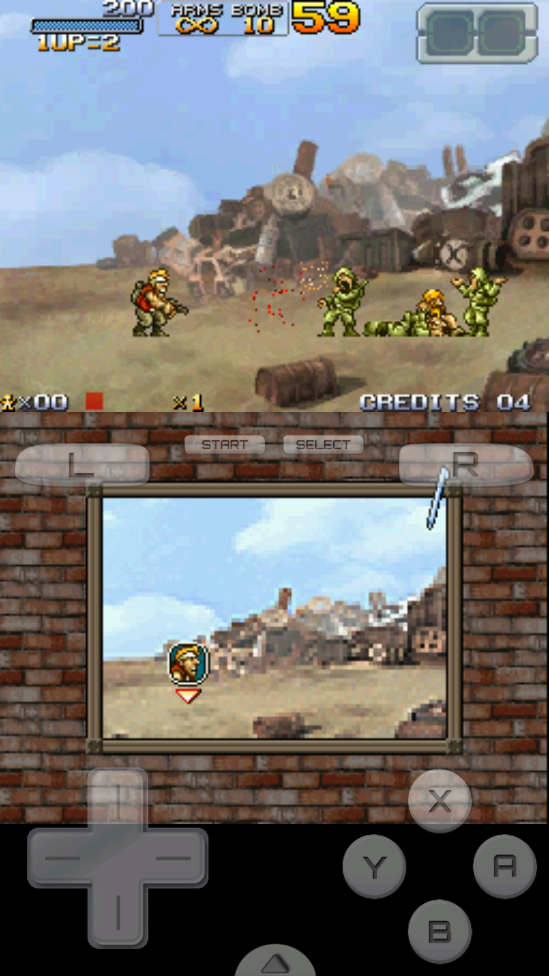 2. 游戏仍然有三个按钮:射击、跳跃和手榴弹,屏幕显示在上屏幕,而下屏幕用于显示地图。