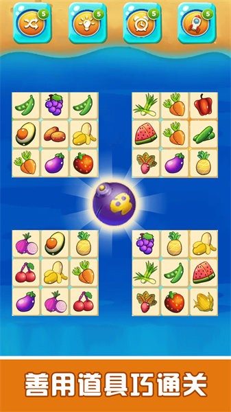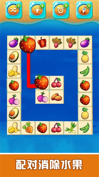 3. 在快乐宝宝水果公园,选择一对相同的图案连接,应该注意的是,连接应该避免其他模式。
