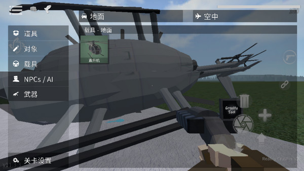 4、点击右边“手枪”按钮拿枪,可以让角色切换到持枪状态,中心用于开枪,+号可以新增靶子角色