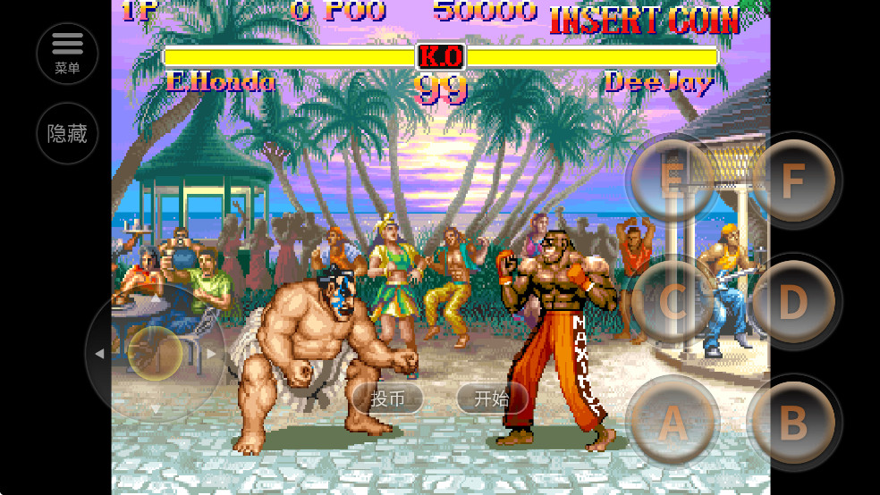 2、超级街头霸王2支持存储、联网对战,横竖屏和虚拟键盘。