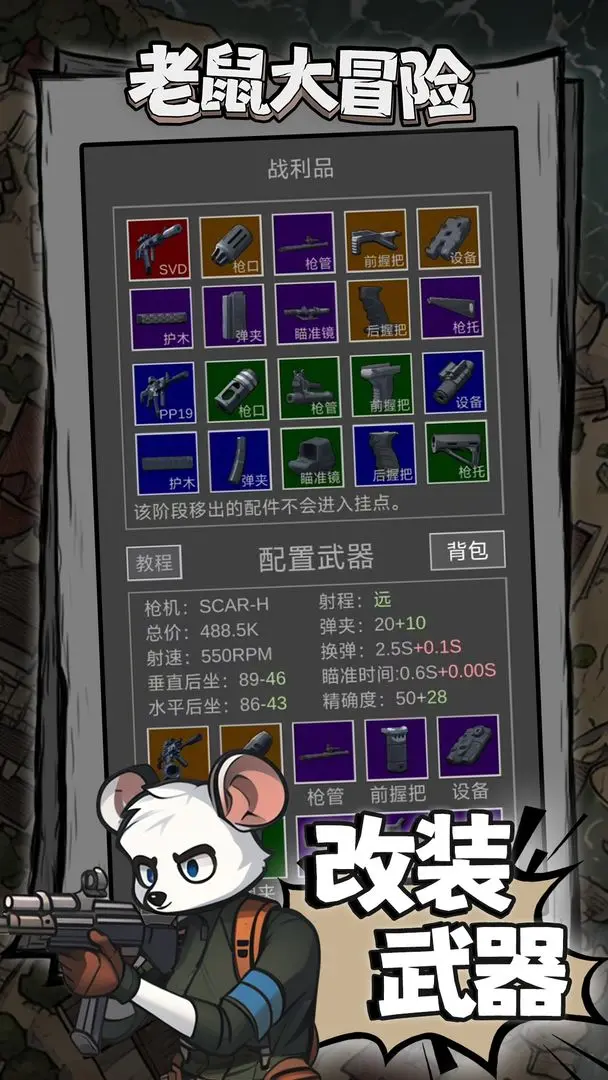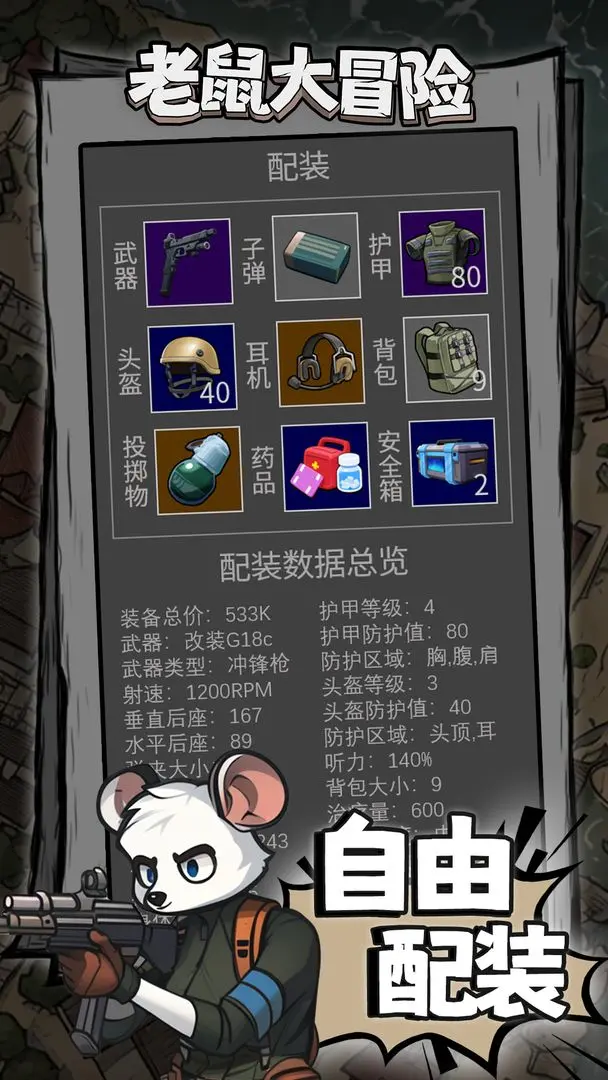 老鼠大冒险手机版中文版是个文字风格的策略生存游戏,玩法灵感源自“逃离科塔夫”类型。游戏采用单机策略模式,在每场战斗开始前,老鼠大冒险玩家可以自由配置所携带的装备与补给物资,不同物品的选择不仅会影响战斗结果,也与资源消耗和管理息息相关,老鼠大冒险每一次决策都需要权衡成本与收益。