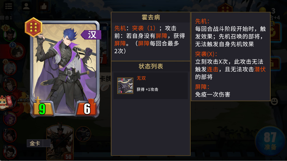5、回合结束后,继续购买武将,三张相同的卡可以合成金卡;