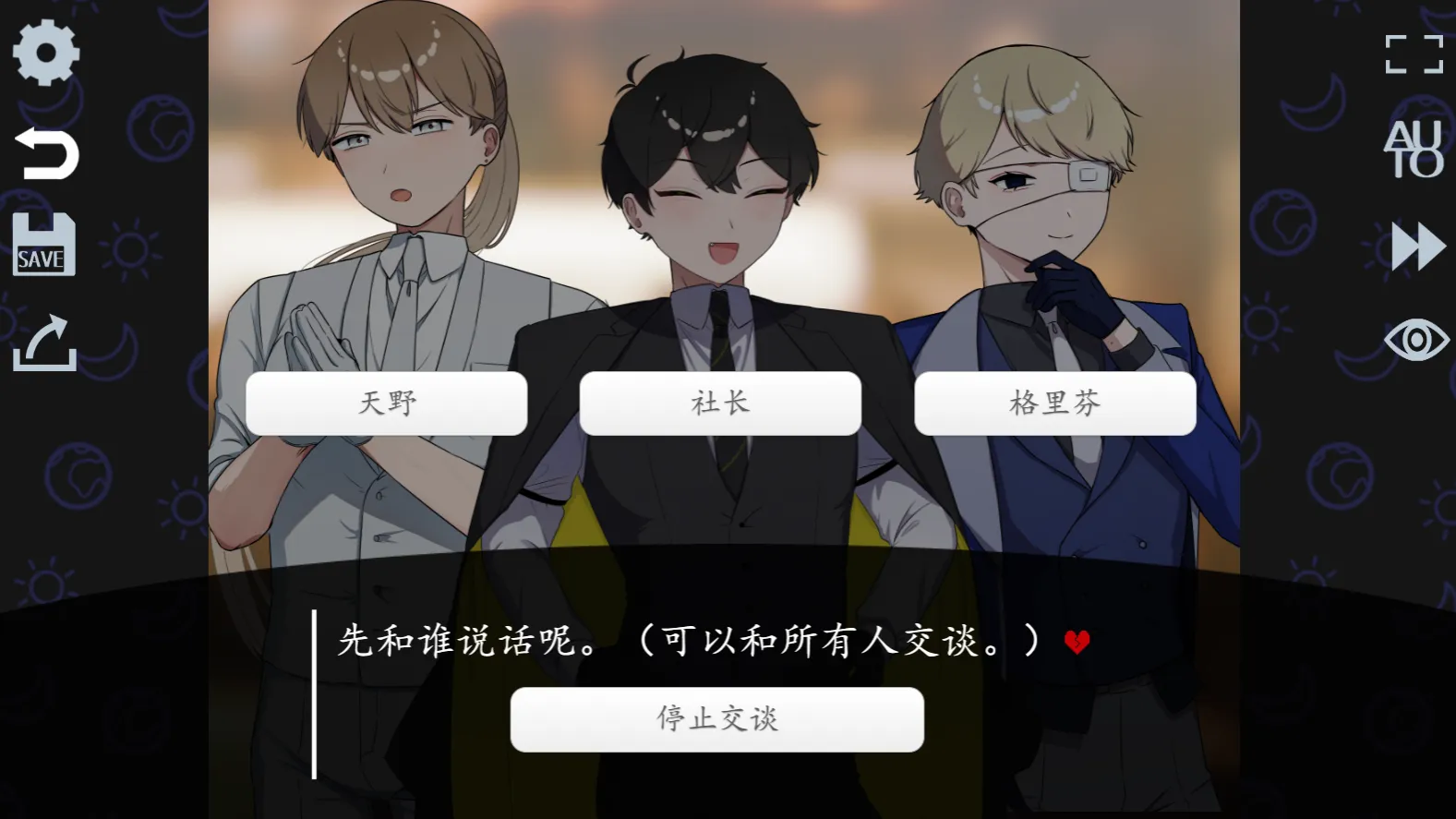 游戏提供多种角色选择,玩家可以与不同的角色互动,并通过各种对话和行动来影响游戏的进程。每个角色都有独特的性格和背景故事,增加了游戏的丰富性和深度。