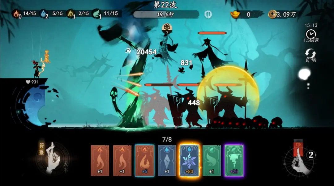 4、每个关卡最后一波次还有强大的首领怪物,玩家可通过局外装备的天书技能,来造成大量伤害。