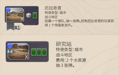 (2)前往厄拉奇恩地区可以免费获得抽牌和战斗机会。对于保罗而言是必争之地。如果你无法占领或者前往厄拉奇恩,则需要退而求其次,前往研究站。但研究站需要支付两点水资源,进而要求你事先和弗雷曼人搞好关系,所以难度要更大一点。