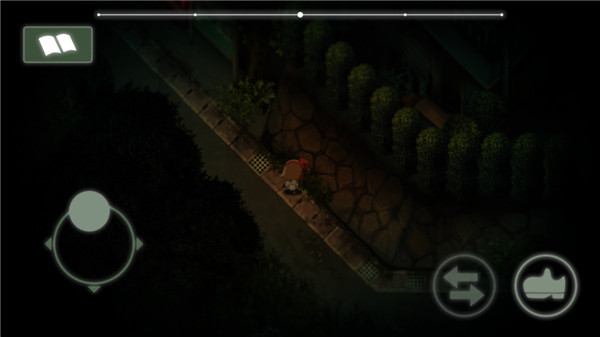 2、在探索过程中,画面会出现“?”和“!”提示:蓝色问号表示可互动区域(如道具、草丛),红色叹号则可直接拾取或隐藏。例如第一章中,玩家需在道路右侧拾取石子并投掷触发剧情。