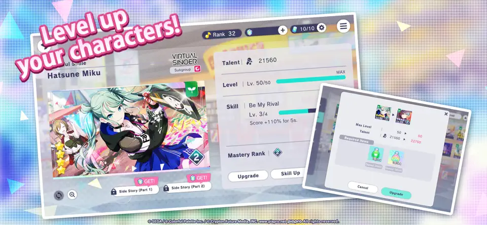 2、组建并培养专属乐队成员,提升角色等级与技能增强演出得分。