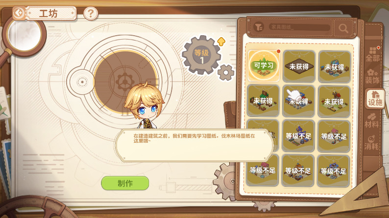 4、通过美食系统,玩家可以使用各种各样的食材对美食进行研发和制作。美食可以增加精灵们的好感度,并为他们恢复能量。