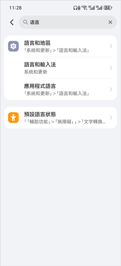 1、进入小小梦魇手机版游戏前打开手机设置,搜索语言,点击“语言和地区”;