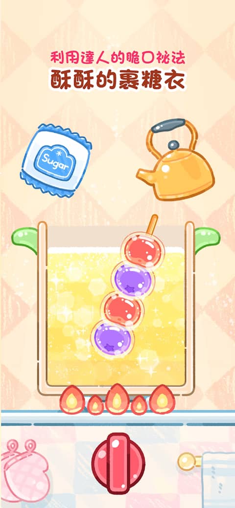 1、模拟糖葫芦制作的休闲游戏,适合所有年龄段的玩家体验;