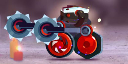 飞天磐石,磐石车身,不放轮子,一个武器孔+一个相对偏上的辅助孔,辅助孔放推进器,武器孔带圆锯,这个流派可以飞过去绕后打,基本克制远程输出,但要小心被泰坦和反弹器击飞到场外,并且在高段位容易被双管火箭克制。