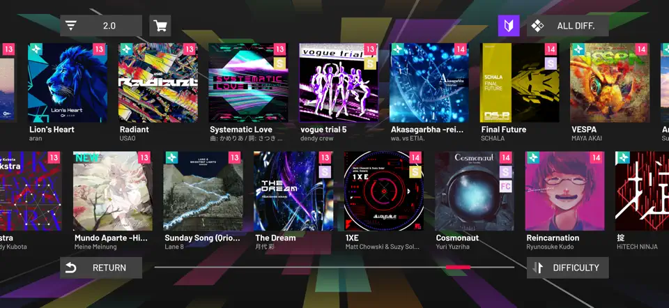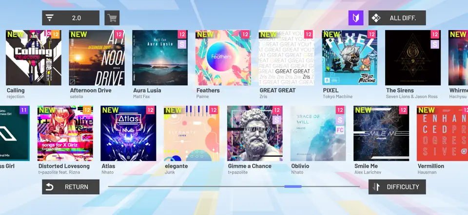 2、游戏收录42首精品乐曲与超100个挑战关卡,全部曲目均来自知名电子音乐人及同人作曲家。