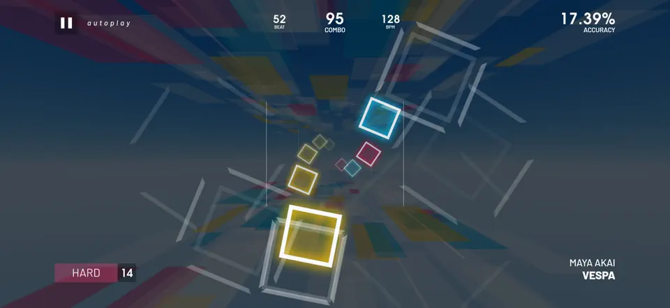 2、与传统音游不同,玩家需精准把握时机,点击随节奏飘来的方块音符。时机判定是游戏的核心,也是挑战的乐趣所在。