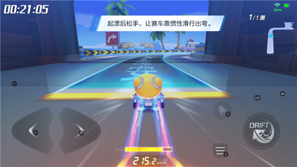 8、就进入弯道的时候,玩家可以左手控制左方向键,右边点击漂移键。